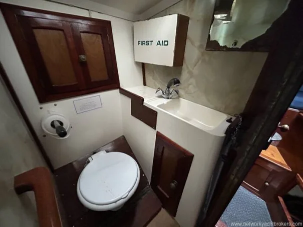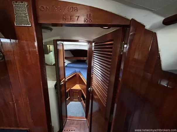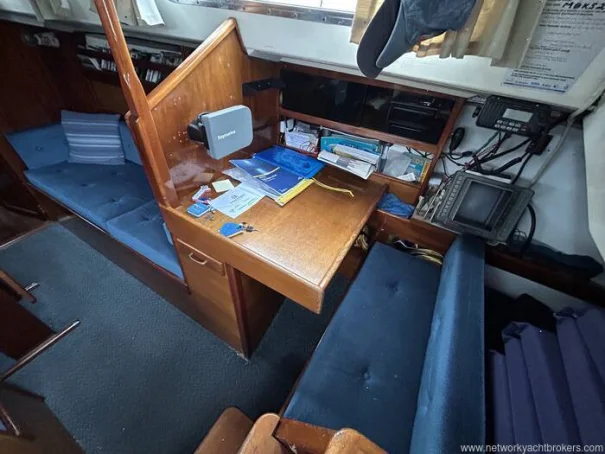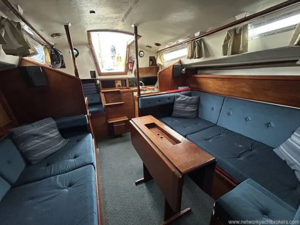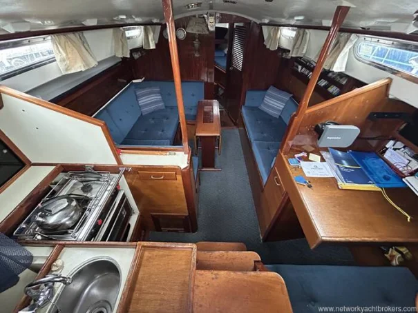 5 berth in one cabin Forward v berth with ensuite heads Saloon with table and twin bunks Chart table with navigation table and pilot berth Galley with fridge, gas oven and sink Inventory : Inventory: