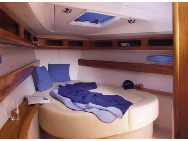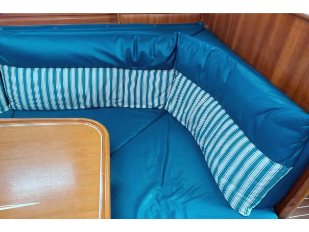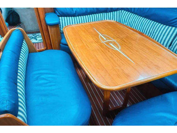 • Saloon: U-shaped seating to starboard with central dining table (convertible to extra berth)