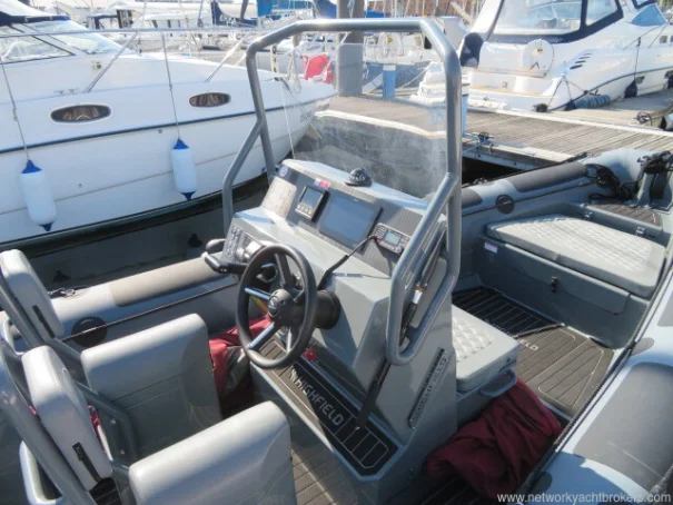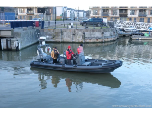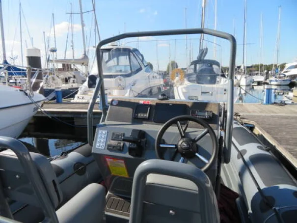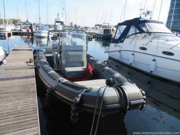 Built in 2022 to 2023 specifications, assembled and launched in 2024, this Highfield Patrol 700 has a grey aluminium hull and Hypalon tubes with non-slip surfaces. It has wheel steering. Rubber toe rails. Stainless steel A Frame. Glass windscreen with black bonded surround. Self-draining cockpit. Last out of the water in January 2025 when her hull was antifouled, tubes polished, and anodes changed. She was lifted for a wash-off in September 2025. Subject to seperate negotiation she is offered for sale with an  Extreme EXT1900 Super Roller Galvanised road trailer. Owner is selling as looking for a larger RIB.