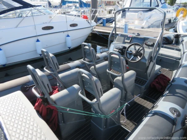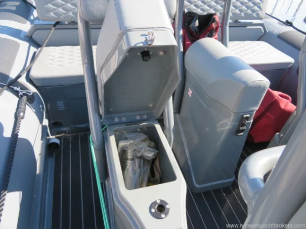 Aft, the boat is fitted with a three-person rear bench seat complete with integrated storage beneath, offering additional practicality for gear and equipment. To starboard, there is an extra jockey seat for crew or trainees.
