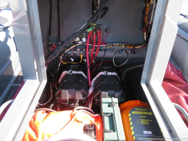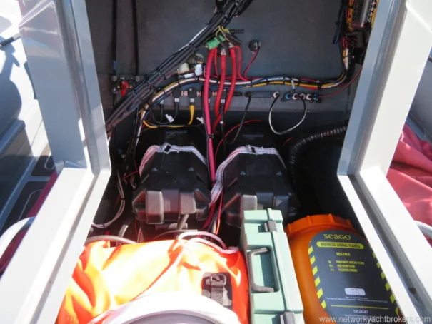 2 x 12-volt 100 AH batteries (1 x engine and 1 x domestic), all 18 months old, charging from the engine alternator.
