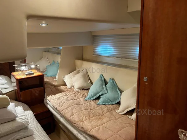 XBOAT ref :6234. Introduction to the magnificent Azimut 52 Flybridge, a remarkable vessel that embodies luxury and performance. This yacht has had only one owner since its delivery in 2000 and has been used privately, never chartered. Powered by two mighty Caterpillar diesel engines, each delivering 660 horsepower, this yacht promises thrilling adventures with only 1,450 engine hours. The Azimut 52 features three spacious cabins and two well-appointed bathrooms and a crew cabin, offering perfect accommodation for family and friends. Designed for comfort and style, the flybridge is the ideal spot to relax and entertain while enjoying panoramic views. This yacht is perfect for those seeking a blend of sophistication and functionality, making it an exceptional choice for cruising enthusiasts.