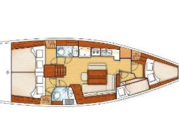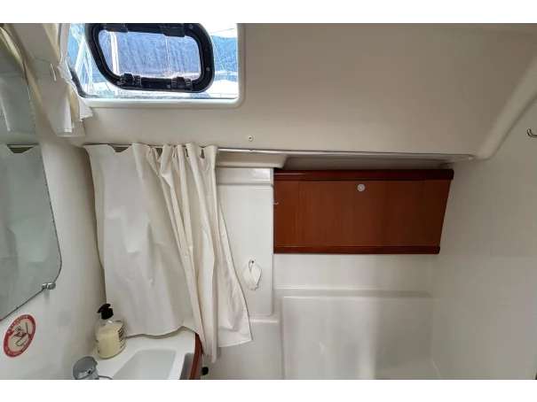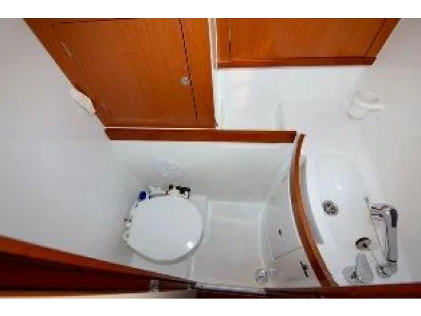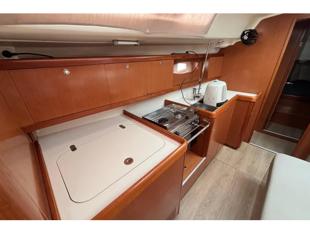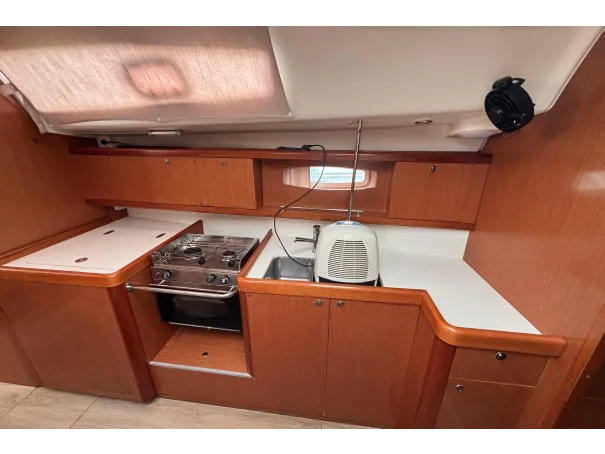 The Oceanis 43 offers four comfortable cabins (three doubles and one twin with bunks) and two bathrooms with showers.