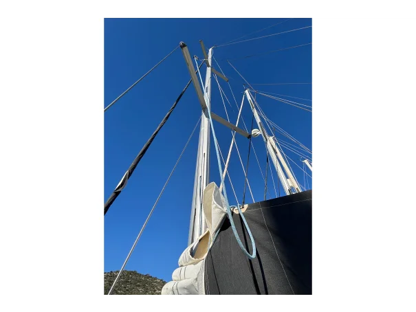 Fully battened mainsail (2025) and furling genoa.