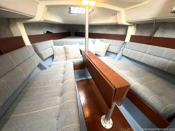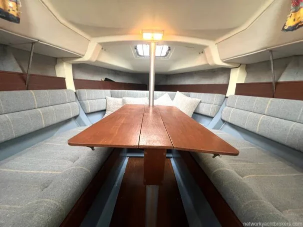 Sleeps up to 6 people in a well-designed cabin layout Forward V-berth with comfortable sleeping space Spacious saloon with a convertible double berth Aft double cabin providing additional privacy Galley area with a two-burner stove, sink, and storage Compact heads compartment with a marine toilet and washbasin Folding saloon table for dining and socializing Large windows and hatches for natural light and ventilation Ample storage throughout the cabin for personal belongings Navigation station with space for charts and instruments Inventory : Deck Equipment