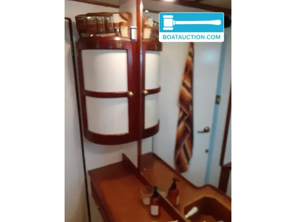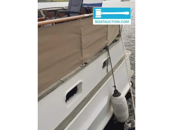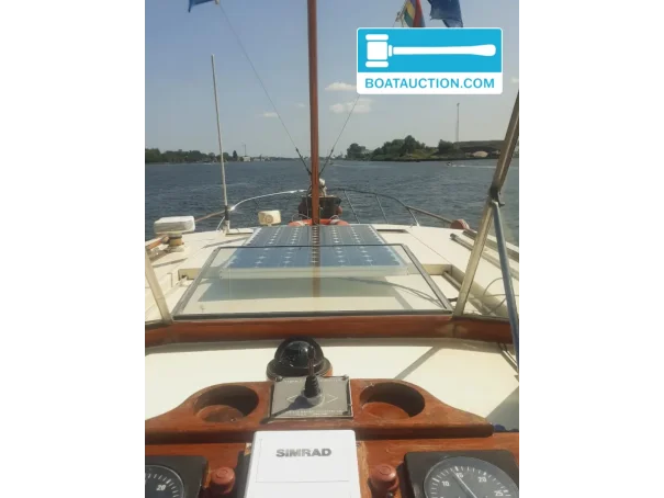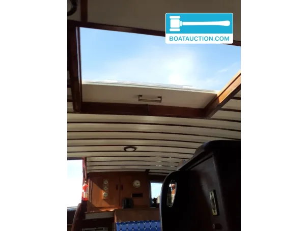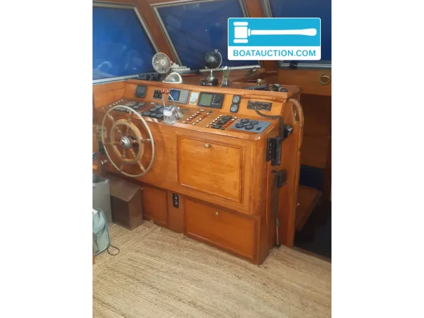 This ship has an interesting history. It was repurchased through a broker from an English couple who sailed it for years in the Mediterranean. In 2022, the ship was fitted with new hull plating in several places, carried out by a shipyard. The teak deck is original and shows signs of age, with some renewed caulking seams here and there. The stabilization system present is currently disabled due to the shallow draft of Dutch waters.
