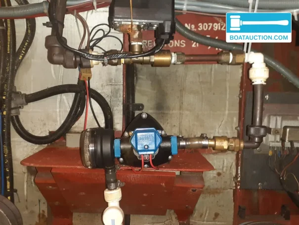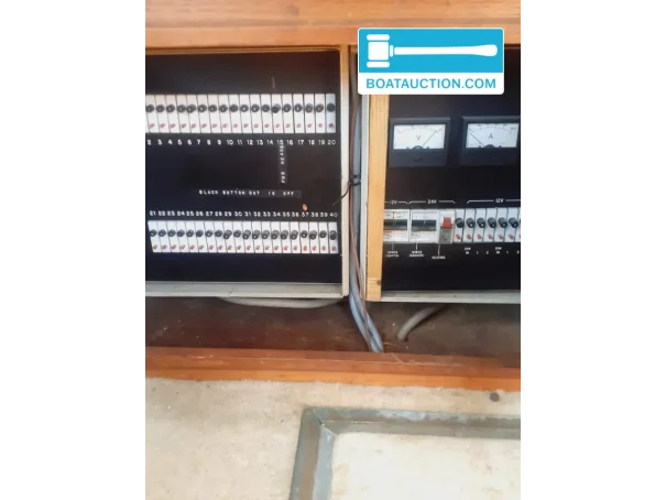 A water-cooled generator from the brand Kohler is installed on board. It is functional, but due to the installation of the generator, part of the electrical installation needs to be reconnected. There are three electrical cabinets, including a 230v fuse box for shore power. The electrical systems are equipped with measuring instruments such as a fuel tank gauge, oil pressure gauge, temperature gauge, and tachometer.