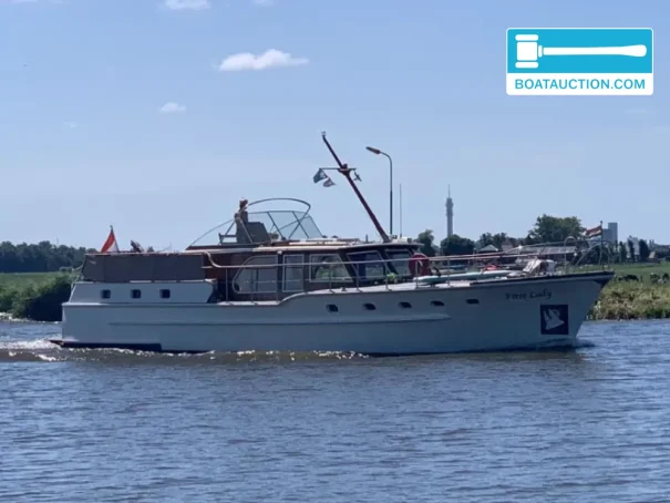 The Feadship Van Lent from 1966 is a classic motor yacht with a length of 16.20 meters and a width of 4.40 meters. The ship was built by the renowned shipyard Feadship Van Lent, a name internationally known for its craftsmanship and high-quality finish. The hull is made of steel and has a chine shape, which contributes to the stability and sailing characteristics of the ship. The draft is 1.35 meters and the air draft is 3.35 meters, making the ship suitable for both inland waters and coastal areas.