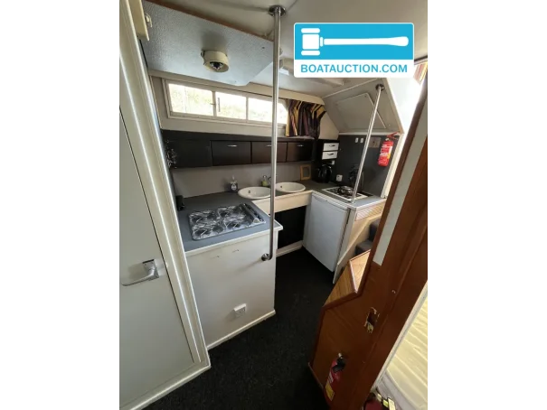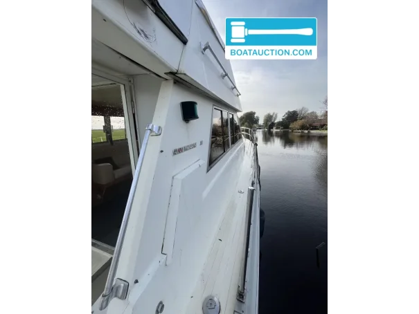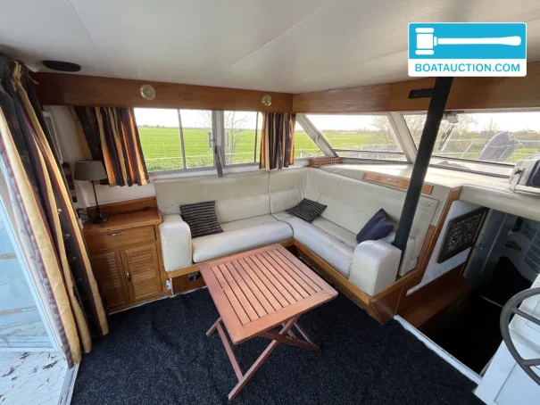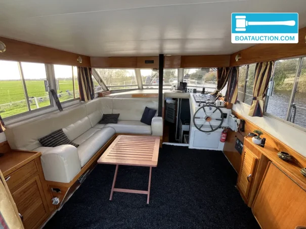 The Princess 37 is a British-made motor yacht, built in 1982 by the renowned shipyard Princess Yachts. This model is constructed from polyester and features an S-shaped hull, contributing to stable sailing characteristics, especially on inland waters. With a length of 11.40 meters and a width of 4.00 meters, the ship offers a spacious interior and comfortable living space on board. The draft is 1.20 meters, making the ship suitable for various sailing areas, particularly inland waters.