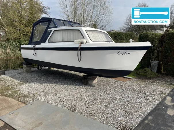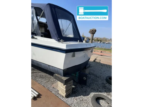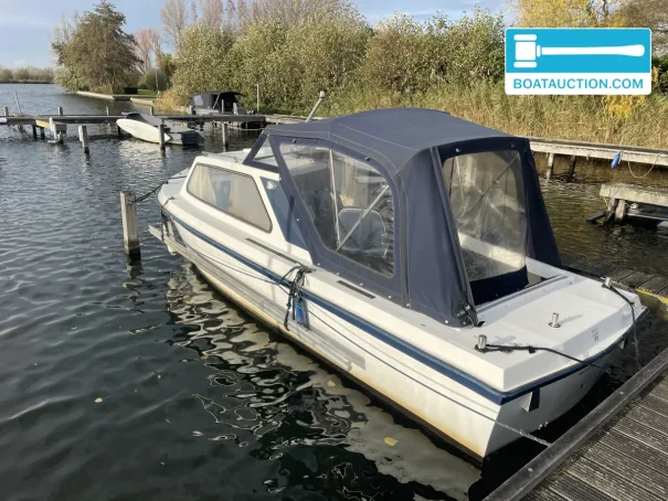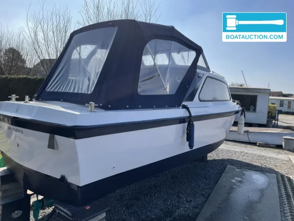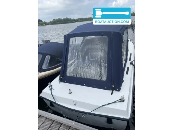 The Onedin 650 is a polyester cabin boat with a length of 6.50 meters and a width of 2.30 meters. Thanks to its limited draft of 60 cm and an air draft of 1.55 meters, this boat is suitable for a wide range of inland waters, including canals, ditches, lakes, and rivers. The hull features a flat bottom, contributing to stable sailing behavior on calm waters. The boat is equipped with an external steering wheel and a single rudder.
