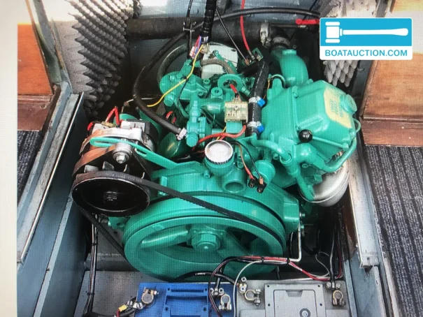 The engine has been overhauled in the past, with seals, gaskets, and the valve seat replaced. Annually, the oil, filters, and impeller have been renewed. The saildrive (type S110) is equipped with new seals and a renewed diaphragm. Additionally, an extra cooling water inlet has been installed.