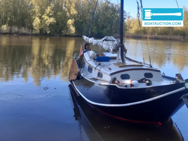 The Grundel is a classic flat-bottomed sailboat, built in 1962 at the Kooijman and de Vries shipyard. This yard is known for its traditional shipbuilding and the creation of characterful ships with a shallow draft, suitable for shallow inland waters. The Grundel has a length of 7.35 meters, a width of 2.45 meters, and a draft of only 45 centimeters. Thanks to this shallow draft, it is possible to navigate areas with this ship that are inaccessible to many other boats, such as the narrow creeks and shallow lakes of the Biesbosch.