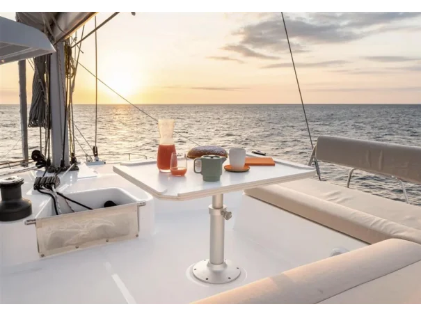 The BALI 4.6 OPEN SPACE is built at our factories in France, using the best possible materials. The choice of a closed-cell PVC foam sandwich and fabrication by infusion ensures rigidity, longevity and weight savings, and as a result, the Bali 4.6 is the lightest in its class. The design and height of the nacelle allows a better passage through the water, giving comfort and safety. With the rig further aft comes the possibility of a larger headsail, and with the self-tacking solent, greater manoeuvrability. Its sail area to light displacement ratio is the highest in its class, giving the performance, safety and sea-keeping quality you would expect from Catana!