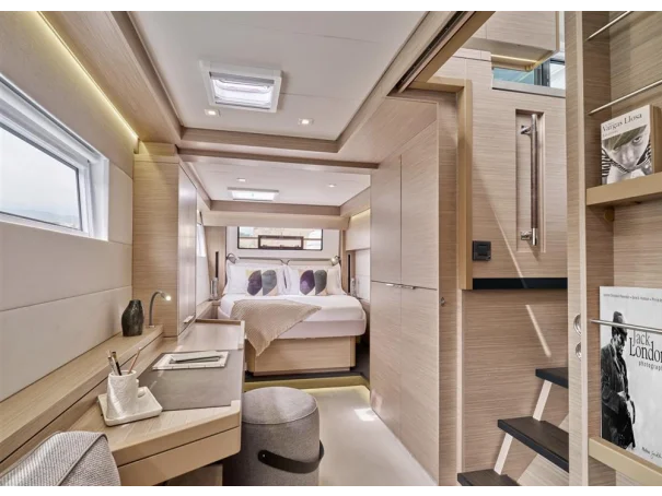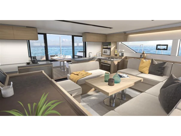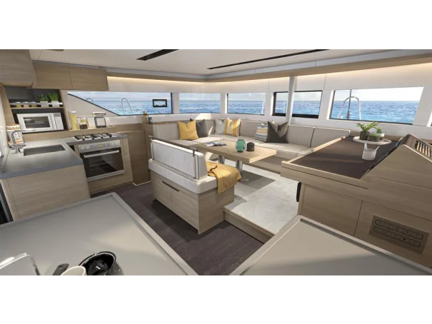 Looking for a new private yacht, yacht management or the best charter management program? Together with our partners we offer ownership solutions, yacht management or charter management around the world. Based on what you are interested and knowing your preference, you can count on us to inform and guide you in the best possible way. We steer your purchase course around tax issues and legal cliffs, towards the matching yacht, area and operator. The offer is available with finance starting on 35% down payment, guaranteed revenue of 8% up to 7 years at a destination of your choice. FORWARD COCKPIT Walk along the side decks to reach the forward cockpit. This beautiful space has an unobstructed view over the ocean and is designed to meet your every need: whether sharing sundowners or laying back comfortably in the middle of the day under the shade sail. Forward cockpit hosts nice amenities like plenty of cupholders, a nice coffee table and a sun protection to enjoy everymoment. INTERIOR LAYOUTS: LIFE AT SEA… IN GENTLE HARMONY The stepped up lounge of the salon offers the best 360° panoramic view over the water. Step into a spacious salon. Discover innovative concept of space. Thanks to the mast being stepped on the fore end of the saloon, the view is continuous. The natural light, coming from the 360° vertical windows, and the new wood finishes “Alpi sand oak” simply reinforce this feeling of space. Wherever you are, the volume of this salon is impressive, allowing for an easy circulation. In addition, it offers all the practical solutions you would expect on a Lagoon. Always more confort for the owners. The owner's cabin benefits as well from this lay out optimization and proposes, as standard, a large walk in dressing. APPEALING FLYBRIDGE The flybridge is optimized to occupy 80% of the roof with 2 large sunpads at the front of the helm station and a huge C shape seating area. The central table can be lowered to create an XL sunbathing area. The comfortable sofas allow you to welcome your guests to share and enjoy relaxing times, alongside the captain, at the helm of the Lagoon 51. Thanks to its modular seating, you can enjoy navigating the boat alone or with others. Discover a truly convivial space. Two stairs lead to the fly, one for the helmsman and one for the guests. This double access allows a great fluidity of connection between the living spaces of the boat. This convivial place is appreciated at anchor but also during navigation. Thanks to full headroom in the flybridge, it can be safely used underway. Maneuvers are at hand from steering station, while the guests can walk around without disturbing the helmsman. The flybridge of the Lagoon 51 is innovative by the modularity of its spaces, its clever ergonomics and the coziness of this great living area.