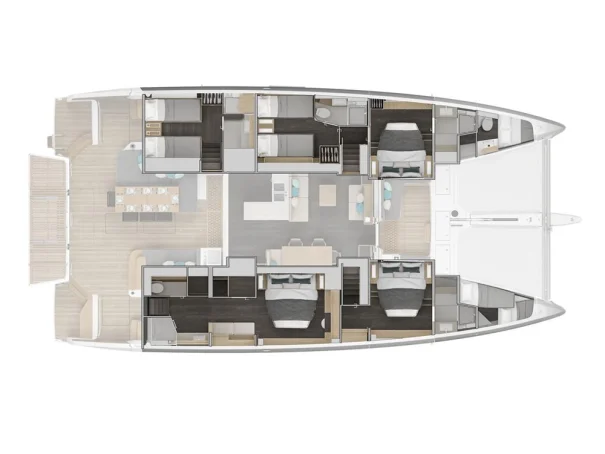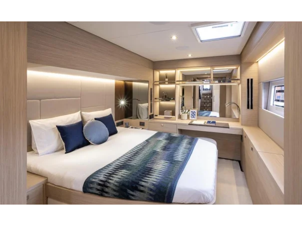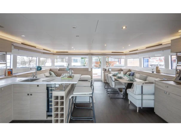 Looking for a new private yacht, yacht management or the best charter management program? Together with our partners we offer ownership solutions, yacht management or charter management around the world. Based on what you are interested and knowing your preference, you can count on us to inform and guide you in the best possible way. We steer your purchase course around tax issues and legal cliffs, towards the matching yacht, area and operator. The offer is available with SGB finance from 20% down payment onwards and up to 15 years finance , income up to 11% ROI regarding to destination. VIEW OF THE HORIZON Entirely open to the sea, the aft cockpit of the Lagoon 60 affords exceptional freedom of movement. Its opening terraces provide immediate access for swimming. Designed to become your favorite living space, the aft cockpit benefits from the safety and ease of access of gently angled steps. FLUID MOTION Accessed by a door forward of the saloon, and with flush flooring, the vast forward cockpit offers a comfortable, inviting space for relaxation. Upon entering each living space, you are greeted with a panoramic view. Movement about the catamaran is fluid, without obstacles. "A vast forward cockpit, flush with the saloon, reinforces the harmony between interior and exterior living spaces." – VPLP Design CONNECTION AND INVITING LIVING SPACES Modular, spacious, and turned toward the exterior, the saloon is adaptable to suit all preferences. Available in versions with a galley or a bar, it benefits from abundant natural lighting, with large vertical windows.
