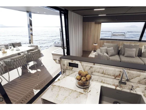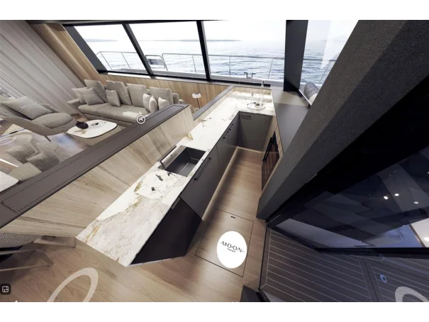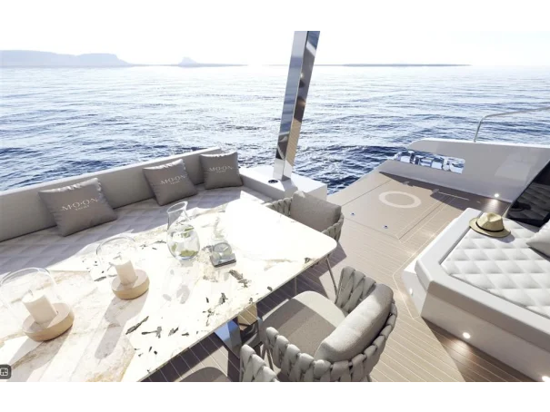New Quality The bold and innovative architectural concept of the superstructure made it possible to level the levels of the salon and the main deck. As a result, the largest sun deck in its class was created. Moon Yacht is a cosmic quality at a very attractive price. Comfort Moon Yacht catamarans offer guests great conditions for relaxation. Such a two-hull will be perfect for seas and oceans. The combination of modern style with the concept of a traditional sailing boat guarantees unprecedented comfort. Great Relaxation Our unit is made of the highest quality materials. Elegance is ensured by the bulwark trim with exclusive teak wood. Thanks to this, the catamaran has a timeless character, and the new connector concept and the elongated line of the superstructure give it a unique level of comfort.