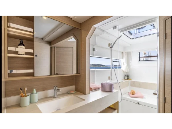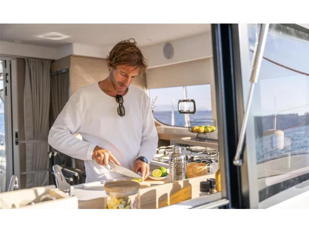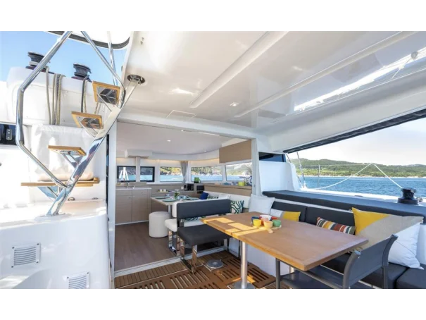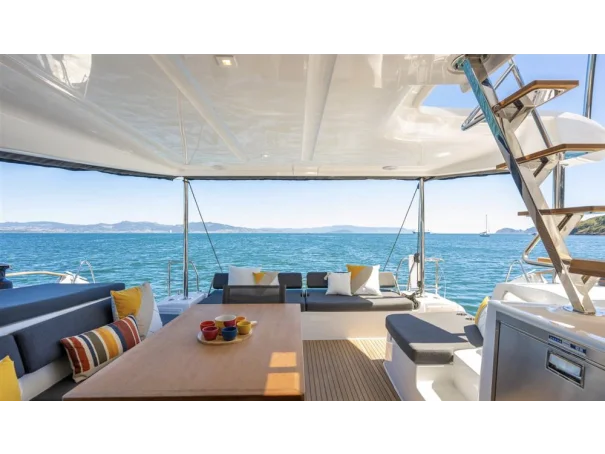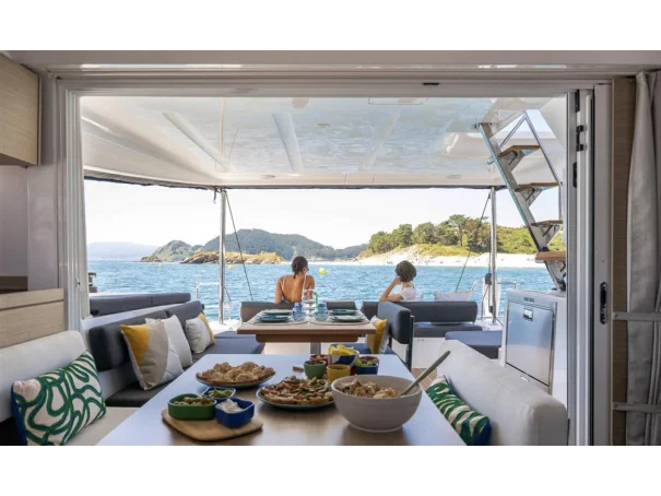 Lagoonâs latest model introduces a groundbreaking feature: an additional aft entryway for each hull, redefining accessibility on board. This innovation enhances the ease of movement between the boat and the dock, prioritising both comfort and safety to elevate the onboard experience.