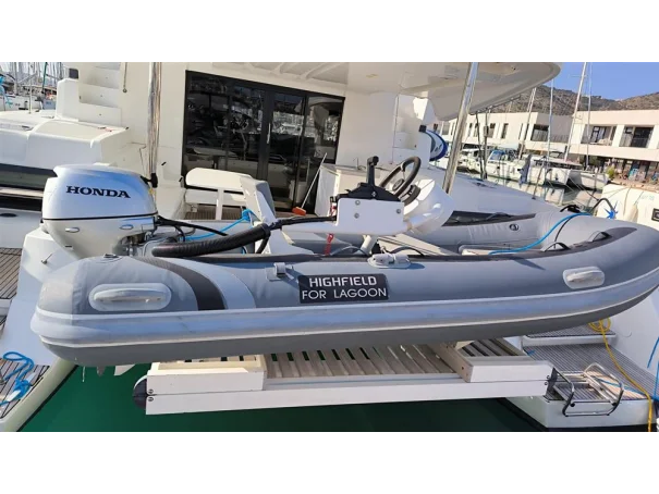 The Lagoon 52 impresses with her extremely smooth and stable sailing performance as well as her open living ambience with a generous amount of space. The yacht is equipped with new flexi teak on the flybridge. Water maker and 12" B&G displays, upgrade to larger fridges, large only 1 year old Highfield 3.50m dinghy with 20HP Honda engine in value of 20.000€ are included, a new 2nd set of sails is also included. The equipment also includes all electric winches, a rear camera, air condition + 2 funs in all cabins and saloon, under water lights, large stainless steel Bimini and much more.... This Lagoon is perfect maintained, all services are done from new. New Lagoon carpets will also be added before hand over together with a new lazy bag. The yacht will be sold and handed over subject to a full survey report to guarantee a perfect condition. Comfort Equipped with all electric winches, air condition and extra ventilation, large 3.50m dinghy with 20HP engine, water maker and more. ready equipped for long distance cruising Short term hand over with full survey included Hand over will be done in prefect technical and optical condition, based on survey report. All safety equipment will be up to date. The yacht comes fully equipped including all fender ropes, dishes. Also new equipment will be added before hand over, like carpets (colour to be decided by the buyer). Itemised details are available on request.