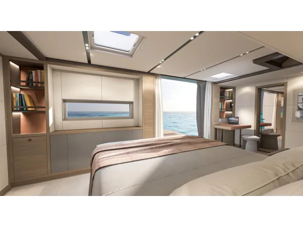 Designed for bold, adventurous spirits, the EIGHTY 3 is distinguished by her distinctive character and her capacity to adapt to suit every preference. Each detail is designed to be personalized, enabling you to craft your own unique yacht. PRECIOUS TIME FOR SMOOTH CRUISING Agile in coastal cruising, the EIGHTY 3 also offers 3,500 nautical miles of fuel autonomy, enabling you to travel the world with full peace of mind. On board, the flush main deck offers a perfect connection with the environment. Equipment for marine activities, such as a jet ski or tender, are ideal for making the most of an afternoon anchorage, with dedicated space to the aft of the yacht. A YACHT CRAFTED BY EXCELLENCE Designed by and for bold, adventurous spirits, the EIGHTY 3 is the fruit of combined talents, the meeting of brilliant naval architects with one of the world’s most respected builders of super yachts. Her design delivers 300 m² of dedicated exterior living space for relaxation, with an aft swim platform extending up to 22 m².
