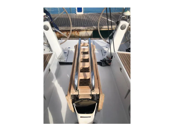 • Carbon gangway, teak cockpit table, folding bikes, paddleboard