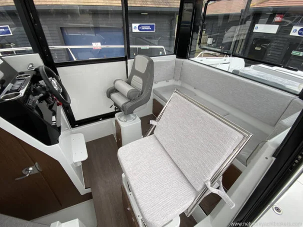 This example is a high specification which includes a Yamaha 200hp (upgrade to Yamaha 250hp available), bow thruster, anchor windlass, fridge, swim platforms, marine toilet, shore power, fold out bench seating, cushions in front cockpit and more... She is currently spec'd to have a sliding door on the starboard and port side of the helm and saloon area but this could be changed.