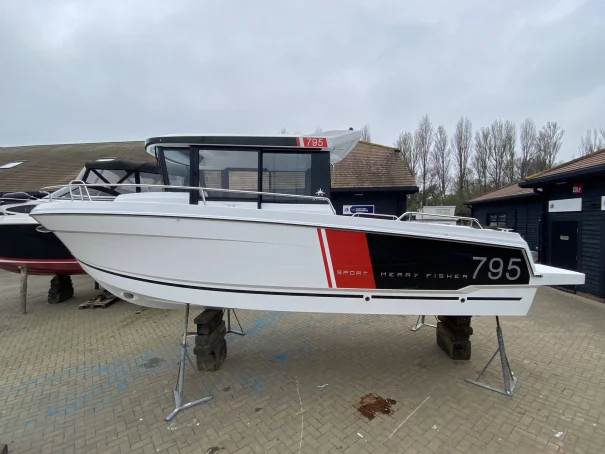 The Merry Fisher 795 Sport is designed to facilitate sporty outings at sea. The vast, modular cockpit enables you to clear the space entirely, with numerous storage lockers and at-tachment systems for fishing or other marine activities requiring the handling of equipment. Even the cockpit roof is designed without supports, in order to facilitate movement on board and avoid obstructions while casting. In just minutes, the cockpit changes into a saloon with removable bench seating and tables. This boat also features a U-shaped saloon in the forward cockpit, with two atmospheres that can be perceived from one side or other of the wheelhouse.