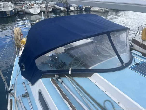 She has been thoughtfully maintained and upgraded over the years, including a new single-lever engine control (2021), Bamar genoa furling (2021), and electronics, including Simrad navigation systems and JRC radar. A sprayhood, cockpit cushions, and practical canvas gear enhance comfort and convenience. Safety is well catered for with lifebuoys and Danbuoy.