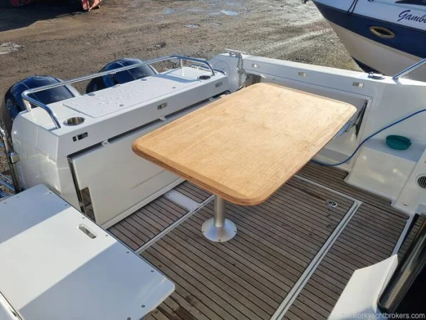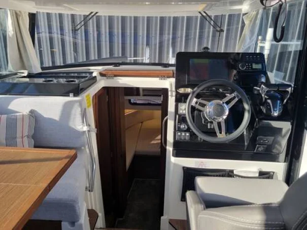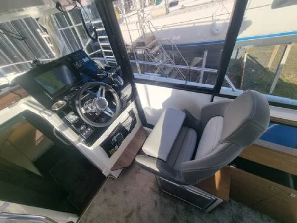 Accommodation includes two double cabins, a bright wheelhouse with 360° visibility, and a large, versatile cockpitideal for sport cruising, fishing, or family adventures. Additional features include a bow thruster and heating, ensuring comfort and control in all seasons.