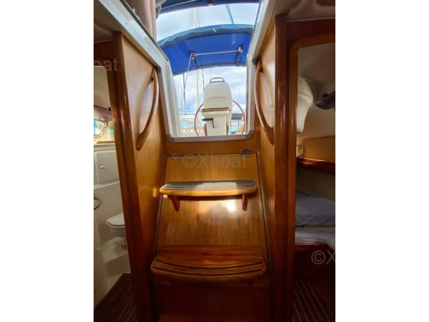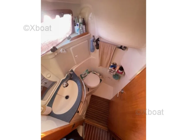 XBOAT ref: 6241. My Bavaria 30 Cruiser is an excellent sailboat that I am completely satisfied with. It has perfectly met my sailing project, it is very easy to maintain, and at sea it is reliable and reassuring, which is generally what one expects from their sailboat. The sails have recently been serviced, they are in good condition, the boat is equipped with a VHF AIS, an autopilot on a wheel, and complete navigation electronics for offshore cruising. The clear panels of the sprayhood have been replaced recently, it is equipped with a bimini, the cockpit is spacious and friendly. Easy access to the rear platform. In detail:
