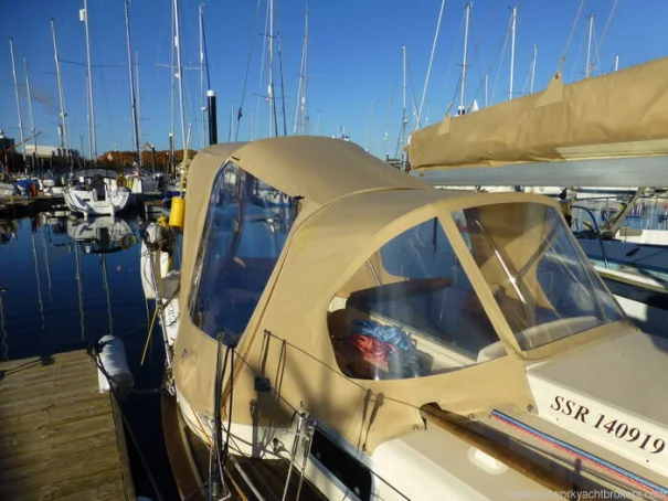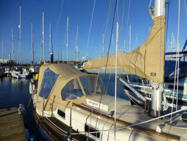 This Victoria 800 has been refurbished winter 2024-25 and looks great with the polished hull and new canvas work by Saturn Sails including a stackpack mainsail bag and a full cockpit enclosure which together with the Eperspacher heating makes her perfect for our Scottish weather. The recent upgrades include a reconditioned Volvo Penta 20hp engine with just 20 hours recorded. She also benefits from shore power, solar charging, Autohelm log and wind, Raymarine VHF and depth and some safety equipment.