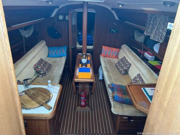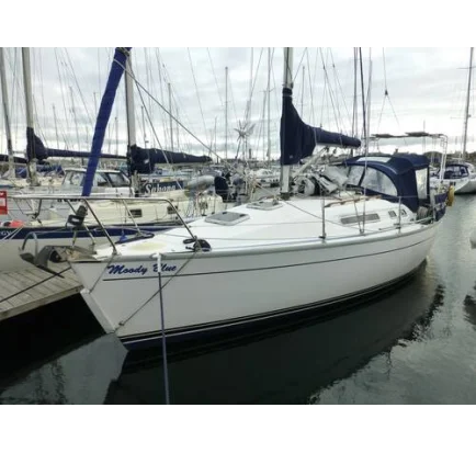 1999 BAVARIA 31. Fin keel. Sloop rig, with new Mainsail and Headsail. Volvo Penta MD2020 (19hp) with a sail drive. “Seren Wen'’ (Welsh for White Star) is easily handled and rigged for solo sailing. She has 6 berths in 2 cabins and saloon; head with handbasin and shower; a galley with a good-sized fridge; pressurised water system including hot water from both the engine and shore power; auto-pilot and easy reefing. With only 5 owners from new, she is a good example of this popular yacht, having had several improvements to aid safety and enjoyment aboard; including a folding propeller, and a comprehensive suite of navigation equipment including binnacle mounted GPS plotter with radar overlay and AIS. Kept in good overall condition “Seren Wen” would suit a young family or those who need when cruising something easy to sail.