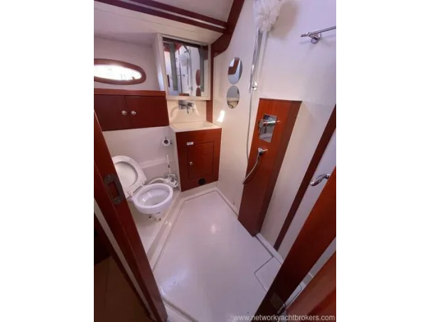 One forward with marine toilet, wash hand basin, shower and holding tank