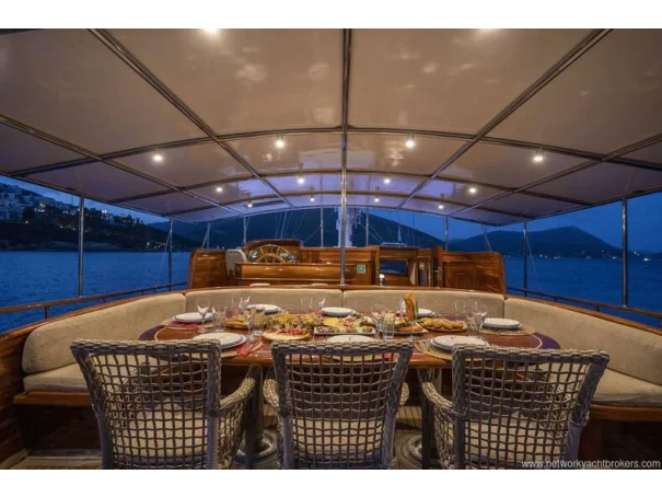 Elegant 32m Bodrum gulet built in 2009, offering three en-suite cabins for six guests, a spacious saloon and large outdoor living areas. Equipped with twin 450 HP Iveco engines, two 33 kW generators, Simrad navigation and 2×220 L/h watermakers. Designed for comfortable cruising and maintained to a high standard, ideal for private use or boutique charter. Ready for the 2025 season.