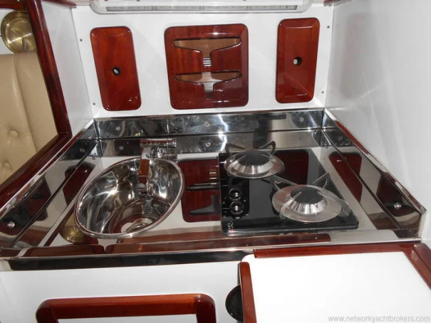 9. Custom-designed galley with stainless steel sink