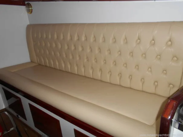 6. Two comfortable white leather sofa/berths (Venetian motorboat style) in forward cabin