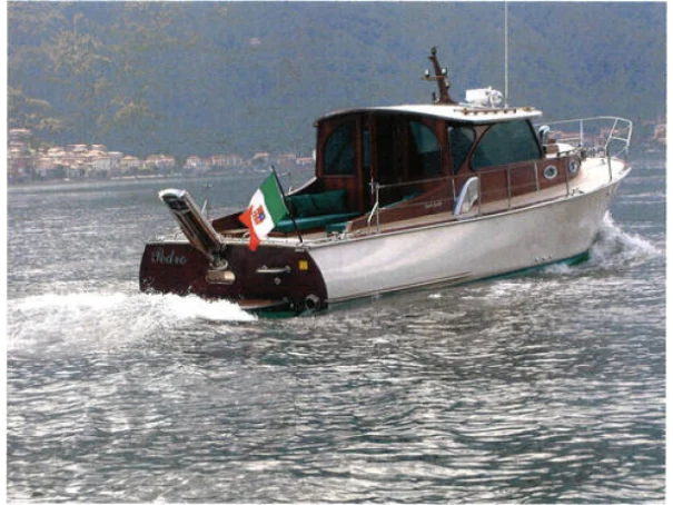 The lobster boat Pedro is an extraordinary, one-off interpretation of the classic American lobster yacht, born from the passion of a private owner, the design expertise of Aldo Gatti (Geometrie Marine Studio), and the master craftsmanship of the historic Cantiere Leopoldo Colombo on Lake Como.