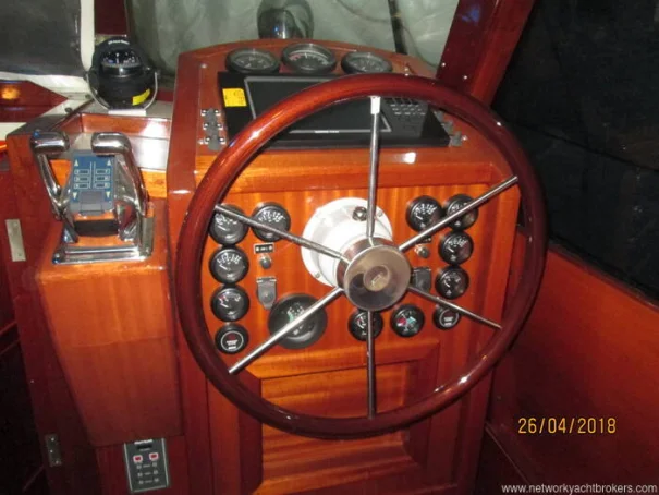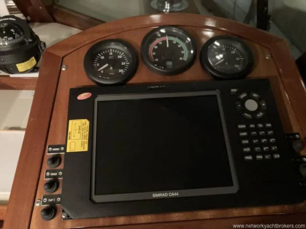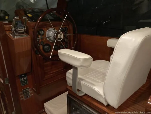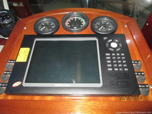 Fully equipped for comfortable cruising, Pedro features complete SIMRAD navigation electronics, generator, trim tabs, remote-controlled gangway, hot and cold exterior shower, aft mooring winch, and bespoke wooden side fenders.