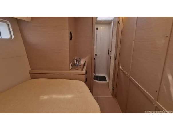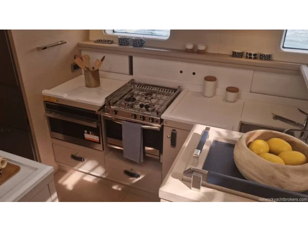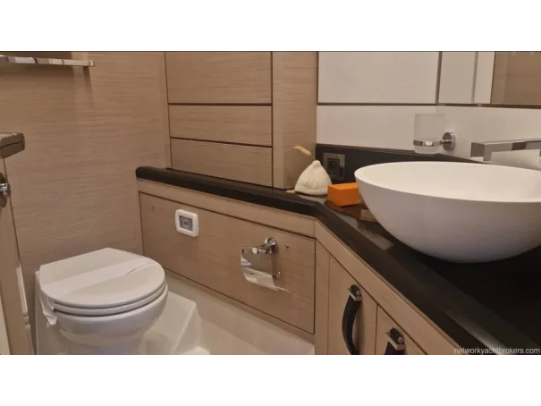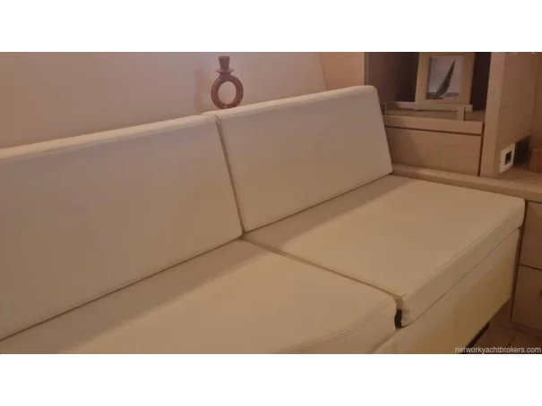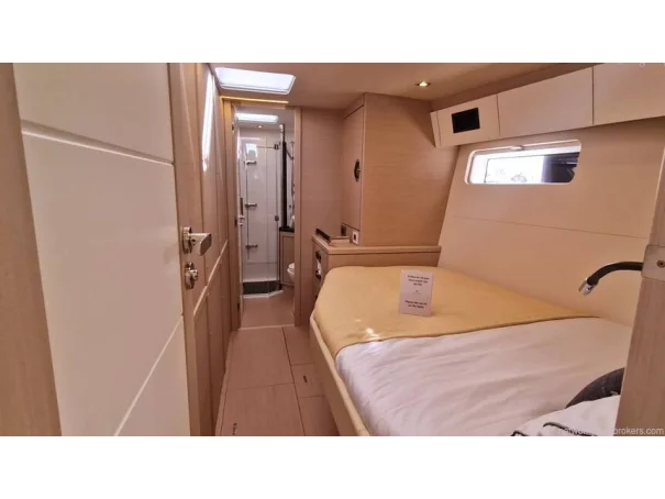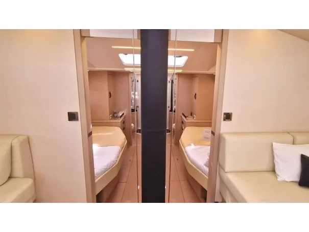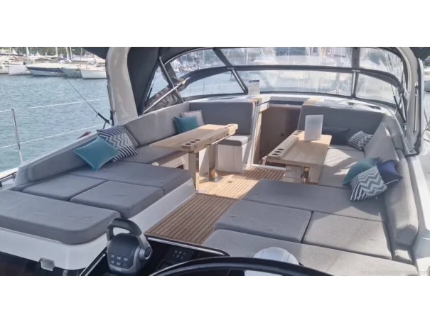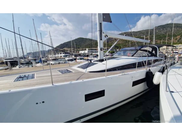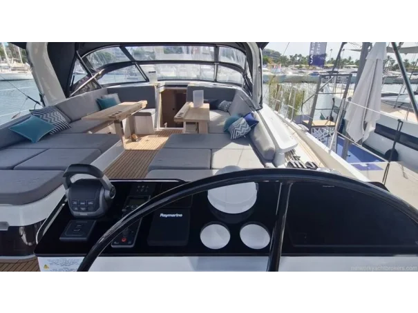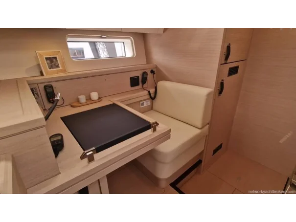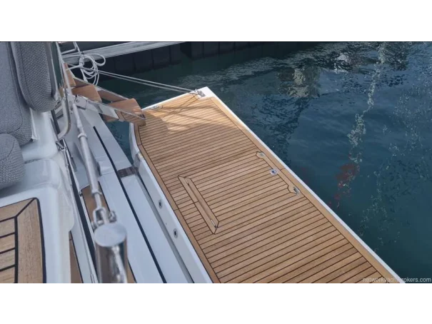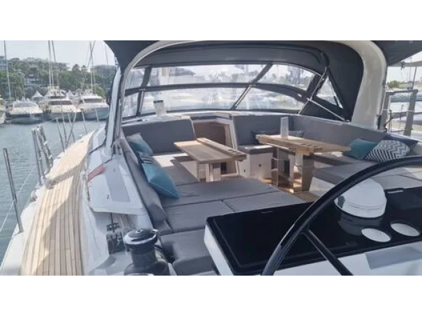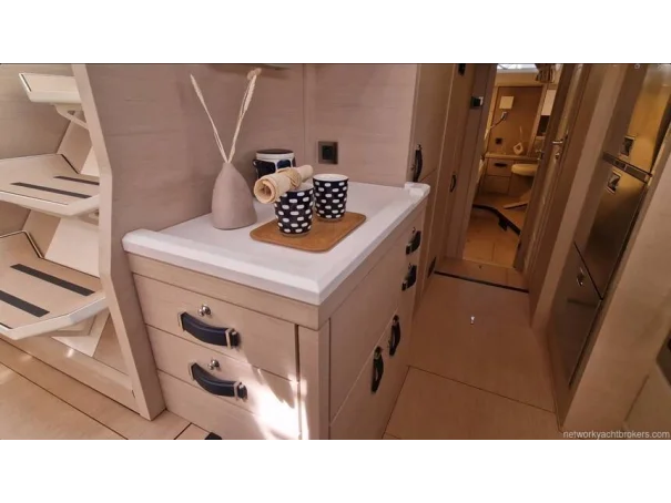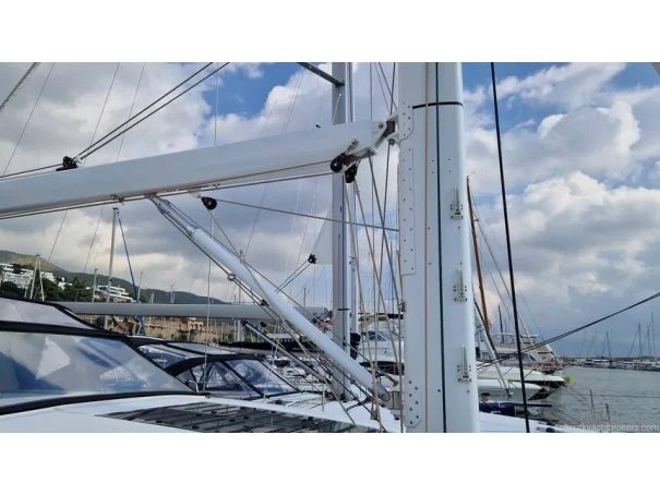 The boat is equipped for effortless performance and reliability at sea. A Volvo D4-175 HP diesel engine delivers smooth propulsion, paired with a Flexofold four-blade folding propeller for efficient power under load. A powerful Onan 17.5 kW generator ensures autonomy for onboard systems, complemented by additional domestic batteries and inverter. Manoeuvring is simplified with a bow thruster and retractable stern thruster, while electric sea and deck wash pumps add convenience. The yacht features a white painted furling mast with electric forestay furler, Code 0 rigging, and spinnaker fittings for versatile sail plans. Sail handling is optimised by two electric rewind halyard winches and two additional electric genoa winches, making trimming effortless. Premium North Sails tri-radial furling mainsail, self-tacking jib, and Code 0 complete the rigging package.