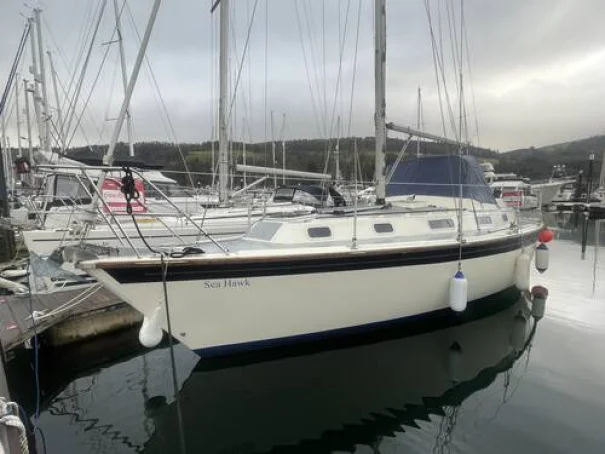 ‘Sea Hawk’ present owner last 10 years. powered by a 2019 Beta 30HP diesel engine, Vetus bow thruster, Sail suite of Kemp sails, main and genoa plus stack pack new in 2013. well maintained yacht with berth available here at Largs Yacht Haven. priced competitively early viewing recommended.