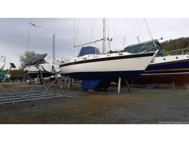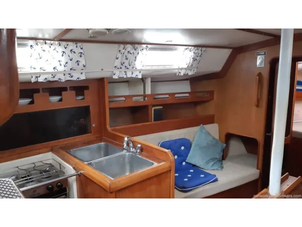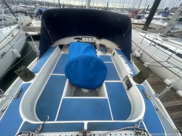 The Westerly Seahawk 34 was designed as a spacious centre-cockpit family cruiser, known for its excellent sailing performance and high-quality construction. Its interior boasts standing headroom throughout. The saloon is bright, airy, and finely finished, featuring a large double-berth aft cabin with a seat and vanity unit, along with a well-designed forward twin layout.