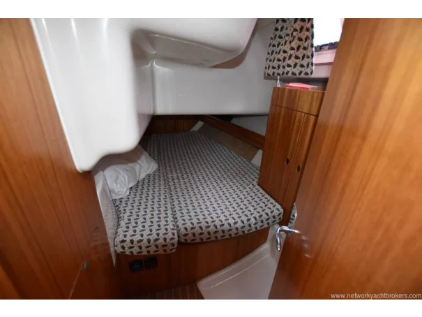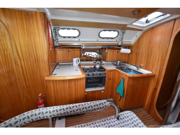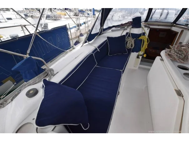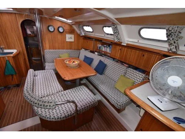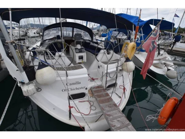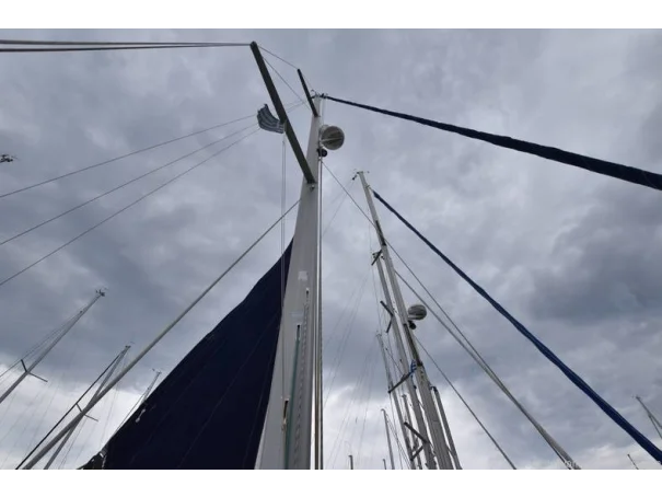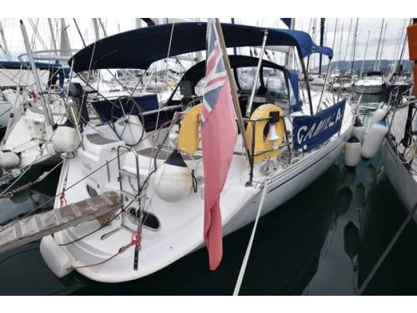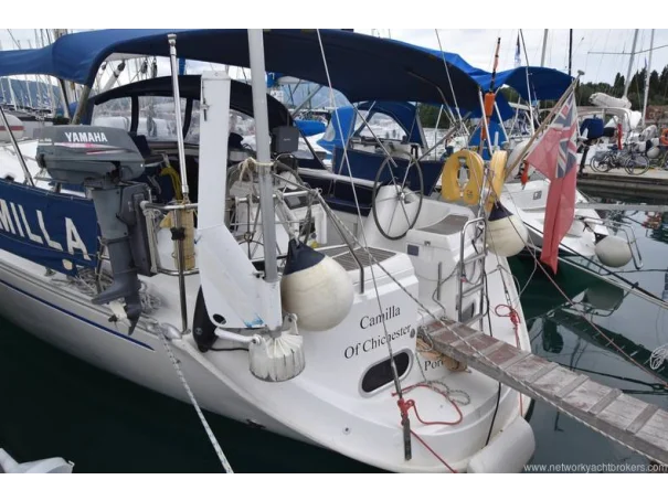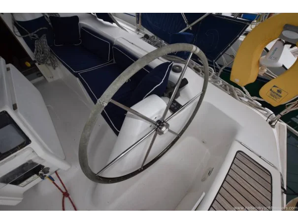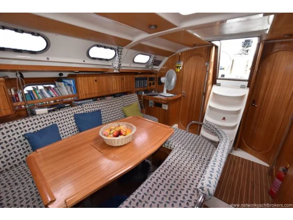 She benefits from a large, sociable cockpit, in-mast furling mainsail, roller-reefing headsail, and a good inventory of onboard equipment, ensuring she is easy to handle short-handed while remaining enjoyable under sail.