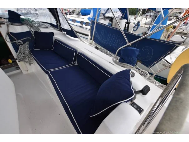 Electrical windlass with feet controls & portable remote controls 80+m of chain 2 electric winches 2 hand winches Fenders & warps Tender Yamaha - 2017 Honda Outboard 2.5 - stroke engine Sprayhood Boarding ladder Bimini Dodgers Cockpit cushions