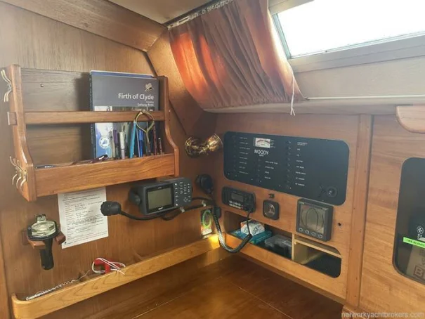 Chart table to aft end of saloon area to port has aft facing chart table. Switches for all ships electrics, tank