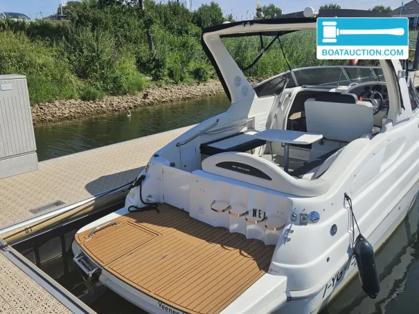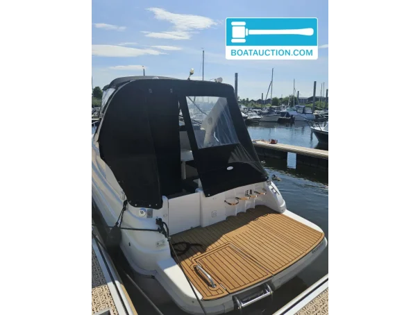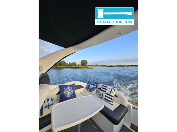 The steering position is located inside, providing protection against weather conditions. The cockpit is equipped with a bimini, cockpit table, and cockpit tent, making the outdoor area usable even in less favorable weather conditions. The swim platform with swim ladder makes it easy to get back on board from the water, ideal for recreational use on warm days.