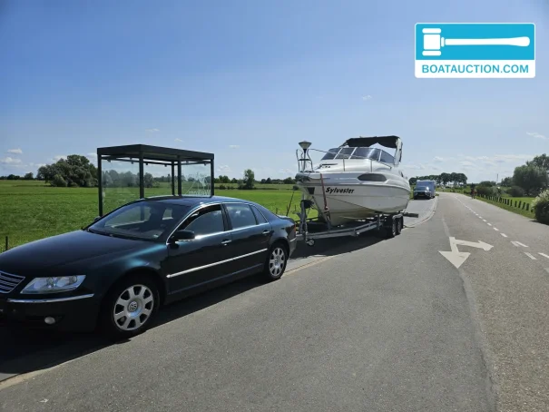 The Rio 700 Cruiser comes with a road trailer with a Dutch license plate, built in 2010, with a license plate and a load capacity of 2600 kg. The trailer is braked, equipped with two axles and five rollers, and fitted with a trailer winch. With a length of 8.5 meters and a width of 2.6 meters, the trailer is suitable for transporting the boat over the road, increasing flexibility to enjoy different sailing locations.