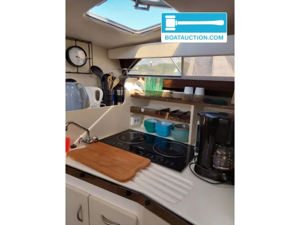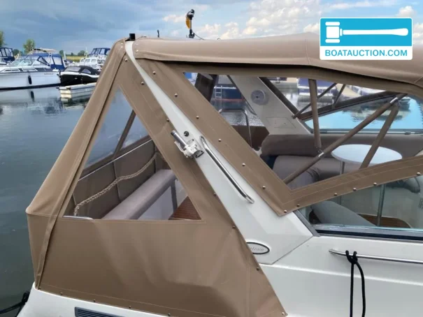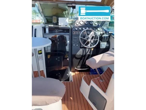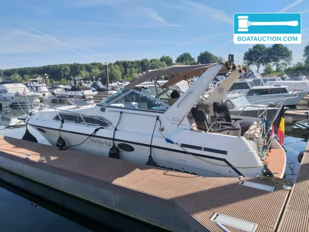The Campion Victoria 957 SRLi from 1994 is a polyester sport cruiser with a length of 9.57 meters and a width of 3.05 meters. This boat combines a sporty appearance with a functional layout and offers space for both short day trips and longer stays on board. Thanks to the twin Volvo Penta diesel engines, each with 150 hp, this Campion has enough power for smooth sailing on inland waters and sheltered coastal areas. The boat is designed with a deep V-hull, providing stable positioning and comfortable sailing characteristics, even at higher speeds or in waves.