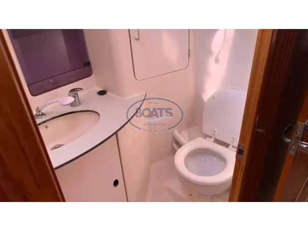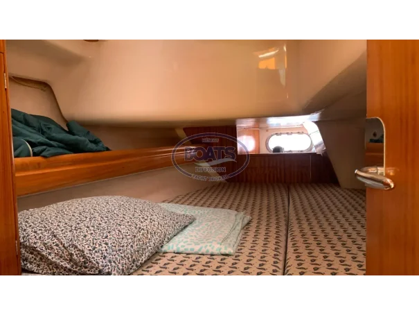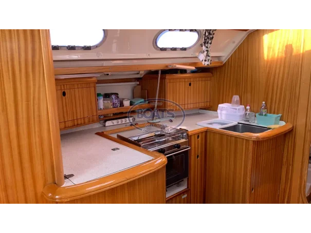INTERIOR / COMFORTPortside galley: double stainless sink, storage, stove + oven (good condition)Pressurized fresh waterHead(s): washbasin, shower, manual marine toilet (working)Holding tank: yesWoodwork / varnish / headlining / floors: good conditionInterior upholstery: good condition
