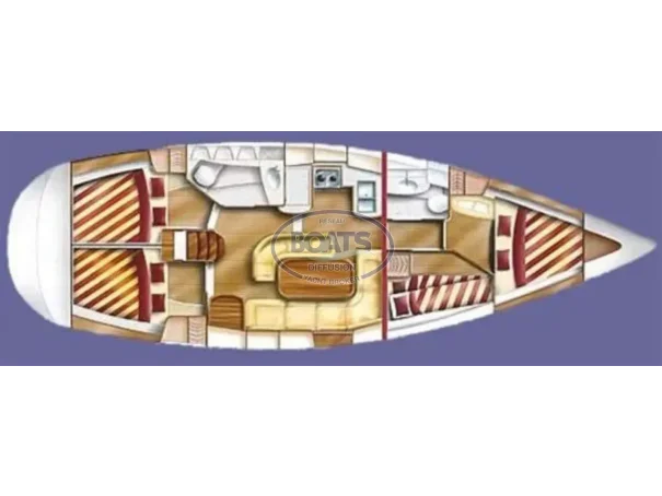 Dufour Gib’Sea 43 (cruising sloop) well known for her generous volume, comfort and seaworthy handling. Sound, well-maintained boat. A survey report is available, with very limited use since it was issued.4-cabin / 2-head layout. The 4th cabin (forepeak with bunk beds) has been converted into a technical/storage room (possible to revert to the original configuration).