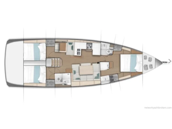 This example is finished in the desirable owners 3-cabin, 2-heads layout with Grey Cedar interior, offering excellent volume, natural light, and storage throughout. The shoal draft keel broadens cruising options while maintaining performance, and twin rudders provide confidence and control under sail. On deck, the layout prioritises safe circulation and ergonomic handling, with all lines led aft and key manoeuvring aids such as a retractable bow thruster and electric winches.