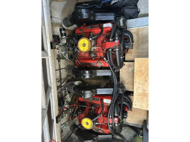 The engines have direct cooling. The engine hours are currently unknown. The engines will require a service as they have not been run for a while. The starboard engine does need some work to get it operational. The outdrive bellows were last changed in 2023. There is a 726-litre aluminium fuel tank. To make handling easy, trim tabs have been fitted.